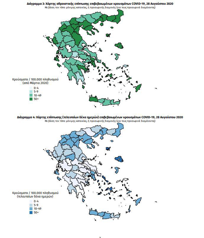 Σήμερα, 28/8/2020, δηλώθηκαν 270 επιπλέον κρούσματα. Από τα 238 εγχώρια κρούσματα, τα 18 συνδέονται με πρόσφατο ταξίδι στο εσωτερικό της χώρας, 16 συνδέονται με επαφή με γνωστά επιβεβαιωμένα κρούσματα ή με ιχνηλατήσεις αυτών και 6 με γνωστές συρροές Αναλυτικότερα: