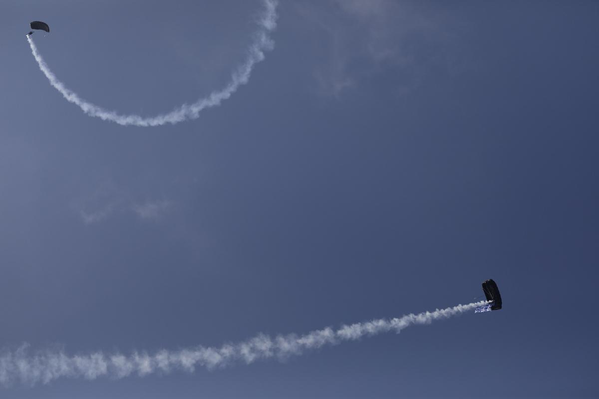 Η στρατιωτική παρέλαση στη Θεσσαλονίκη για τα 81 χρόνια από το Έπος του ’40 έριξε την αυλαία της με τον πιο εντυπωσιακό τρόπο: με την πτώση των αλεξιπτωτιστών.