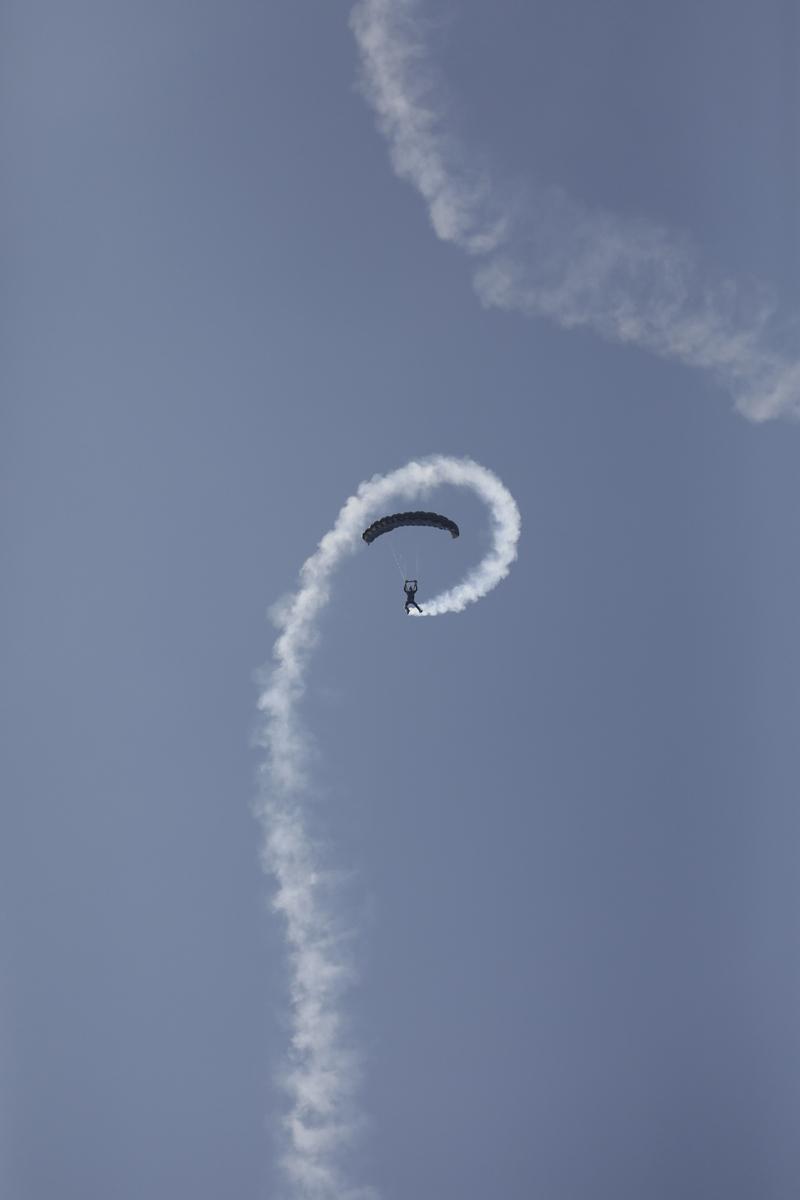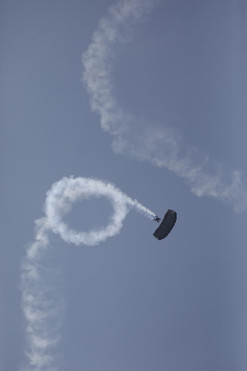 Οι εικόνες από την πτώση των αλεξιπτωτιστών έκοψαν την ανάσα και εντυπωσίασαν όσους βρέθηκαν στη λεωφόρο Μεγάλου Αλεξάνδρου.