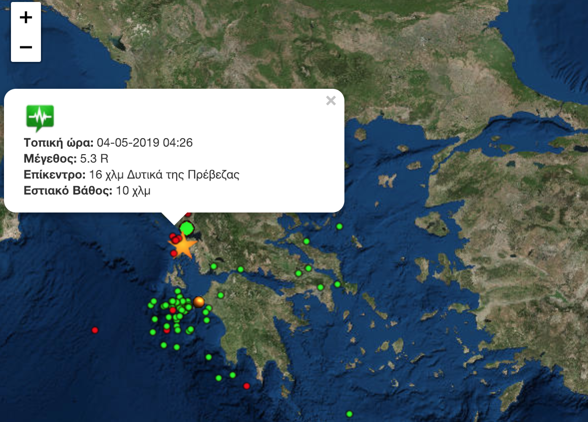 Σεισμική δόνηση 5,2 βαθμών της κλίμακας Ρίχτερ καταγράφηκε στις 04:26 στον θαλάσσιο χώρο 14 χιλιόμετρα δυτικά-βορειοδυτικά της Πρέβεζας και 294 χιλιόμετρα δυτικά-βορειοδυτικά της Αθήνας, ανακοίνωσε πριν από λίγο το Γεωδυναμικό Ινστιτούτο του Εθνικού Αστεροσκοπείου Αθηνών, εκ μέρους των τεσσάρων φορέων συγκρότησης του Εθνικού Σεισμολογικού Δικτύου.