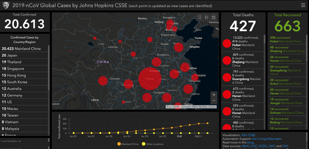 Ο αριθμός των ανθρώπων που μολύνθηκαν από τον νέο κοροναϊό στην Κίνα ξεπέρασε τους 20.400 μετά την καταγραφή 3.235 νέων επιβεβαιωμένων κρουσμάτων σε όλη την επικράτεια, ανακοίνωσε σήμερα η Εθνική Επιτροπή Υγείας. Στην ενημέρωση που κάνει καθημερινά, η Επιτροπή έκανε λόγο για 64 νέους θανάτους εξαιτίας του 2019-nCoV, όλους στην επαρχία Χουμπέι, γεγονός που σημαίνει ότι ο νέος απολογισμός των θυμάτων ανέρχεται σε 425 νεκρούς στην Κίνα και 426 συνολικά, αν προστεθεί ο ασθενής — κινέζος υπήκοος — που υπέκυψε την Κυριακή στις Φιλιππίνες. Από τους νέους θανάτους, οι 48 καταγράφηκαν στην Ουχάν, την πρωτεύουσα της επαρχίας Χουμπέι και εστία της επιδημίας. Το σύνολο των κρουσμάτων στην Κίνα ανερχόταν ως τα μεσάνυχτα χθες Δευτέρα σε 20.438.