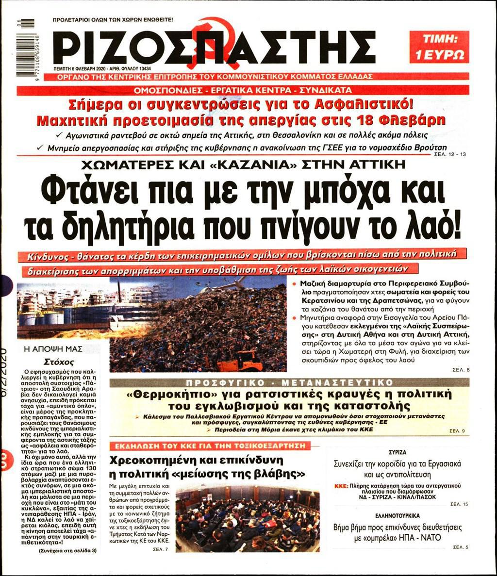 ΡΙΖΟΣΠΑΣΤΗΣ: ” Φτάνει πια με την μπόχα και τα δηλητήρια που πνίγουν το λαό! ”