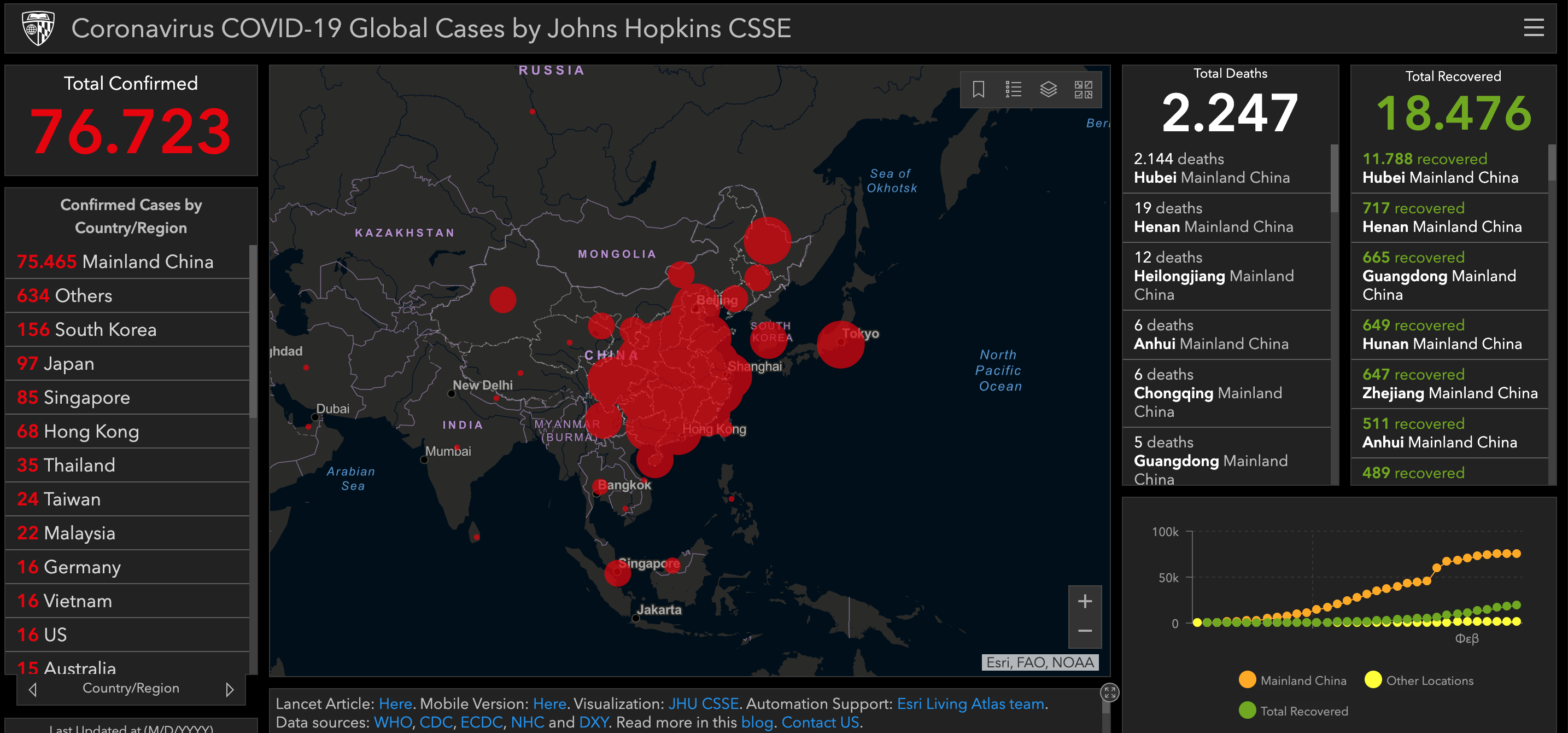 Το σύνολο των επιβεβαιωμένων κρουσμάτων του COVID-19 στην ηπειρωτική Κίνα, εξαιρουμένων των αυτόνομων περιοχών του Χονγκ Κονγκ και του Μακάο, σε 75.645 μέχρι σήμερα. Πάντως ο αριθμός των ανθρώπων που αποθεραπεύθηκαν και έλαβαν εξιτήριο από τα νοσοκομεία και τις κλινικές όπου είχαν εισαχθεί ξεπέρασε τον αριθμό των νέων κρουσμάτων, για τρίτη συναπτή ημέρα, σύμφωνα με την Εθνική Επιτροπή Υγείας: 2.109 ασθενείς βγήκαν από τα νοσοκομεία χθες, αριθμός πολύ υψηλότερος από τα 889 νέα επιβεβαιωμένα κρούσματα της Πέμπτης. Συνολικά, 18.264 άνθρωποι που είχαν μολυνθεί από τον ιό αποθεραπεύθηκαν ως χθες τα μεσάνυχτα.