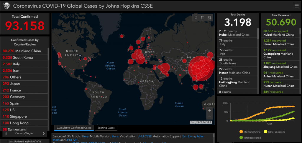Κοροναϊός: 93158 νοσούντες-3198 νεκροί