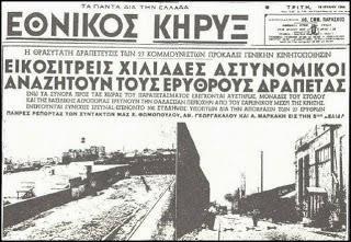 «Η καταπληκτική ομαδική απόδρασις των κομμουνιστικών στελεχών – Μέχρις ώρας ουδείς συνελήφθη από τους 27 κομμουνιστάς τους δραπετεύσαντας από τας φυλακάς Βούρλων το απόγευμα της Κυριακής υπό μυθιστορηματικάς συνθήκας», ανέφερε η εφημερίδα Ακρόπολις.