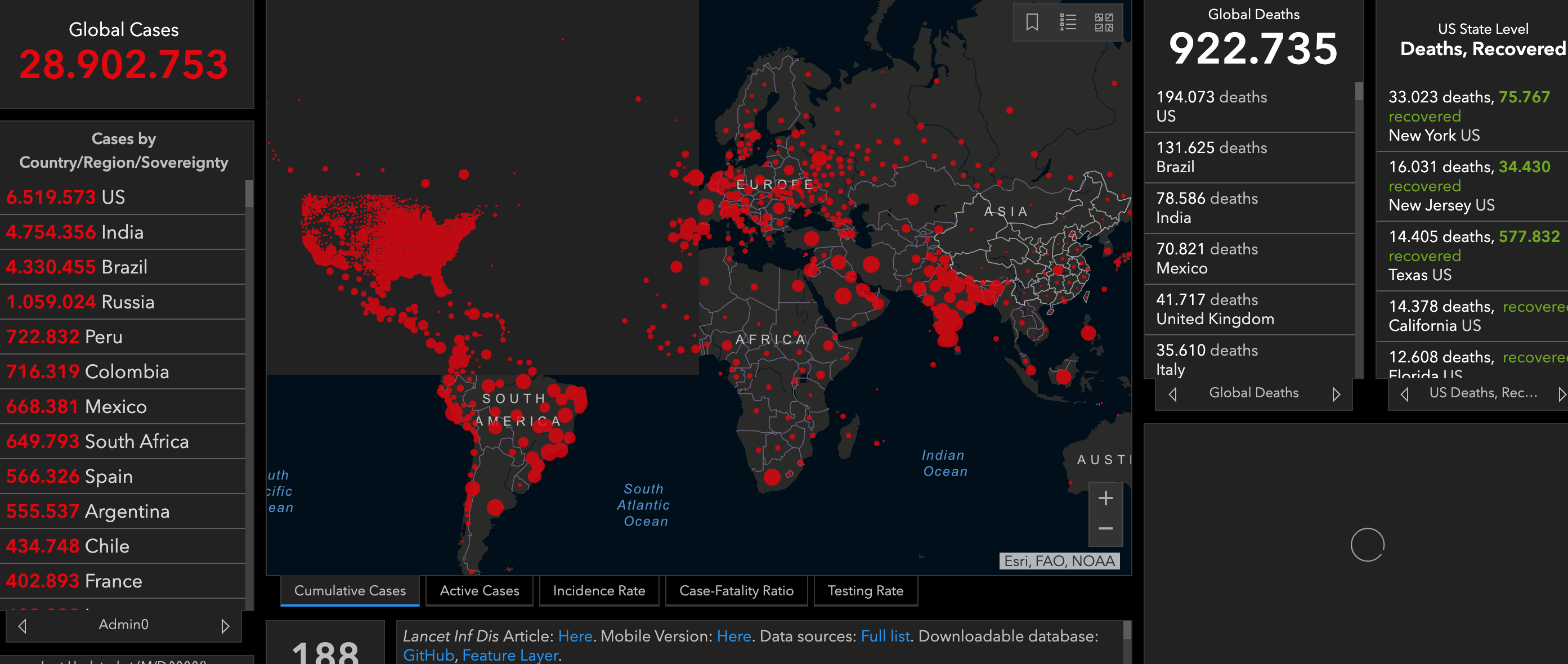Τόσο οι ΗΠΑ όσο και η Ινδία ανακοίνωσαν χωριστά ότι οι νέοι θάνατοι στα εδάφη τους ξεπέρασαν τους 1.000. Η Βραζιλία ανακοίνωσε 874 θανάτους το τελευταίο 24ωρο.