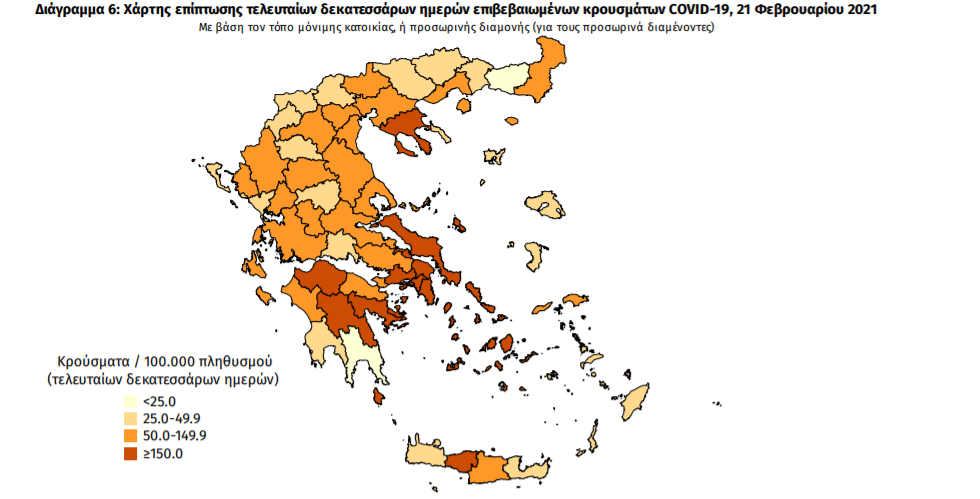 Οι νέοι θάνατοι ασθενών με COVID-19 είναι 25, ενώ από την έναρξη της επιδημίας έχουν καταγραφεί συνολικά 6.297 θάνατοι. Το 95.7% είχε υποκείμενο νόσημα ή/και ηλικία 70 ετών και άνω.
