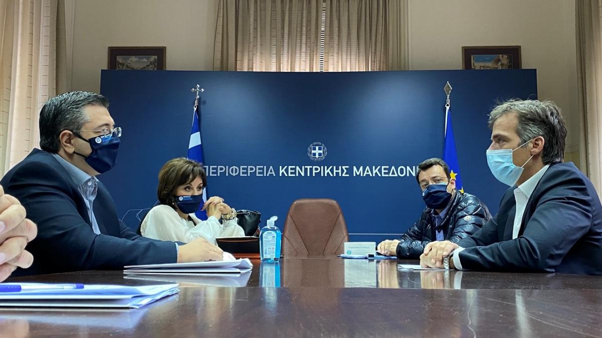 Στη σύσκεψη συμμετείχαν επίσης οι Αντιπεριφερειάρχες Θεσσαλονίκης Βούλα Πατουλίδου και Δημόσιας Υγείας Χρήστος Μήττας, καθώς και ο Επικεφαλής της Πολιτικής Προστασίας της Περιφέρειας Κεντρικής Μακεδονίας Χαράλαμπος Στεργιάδης.