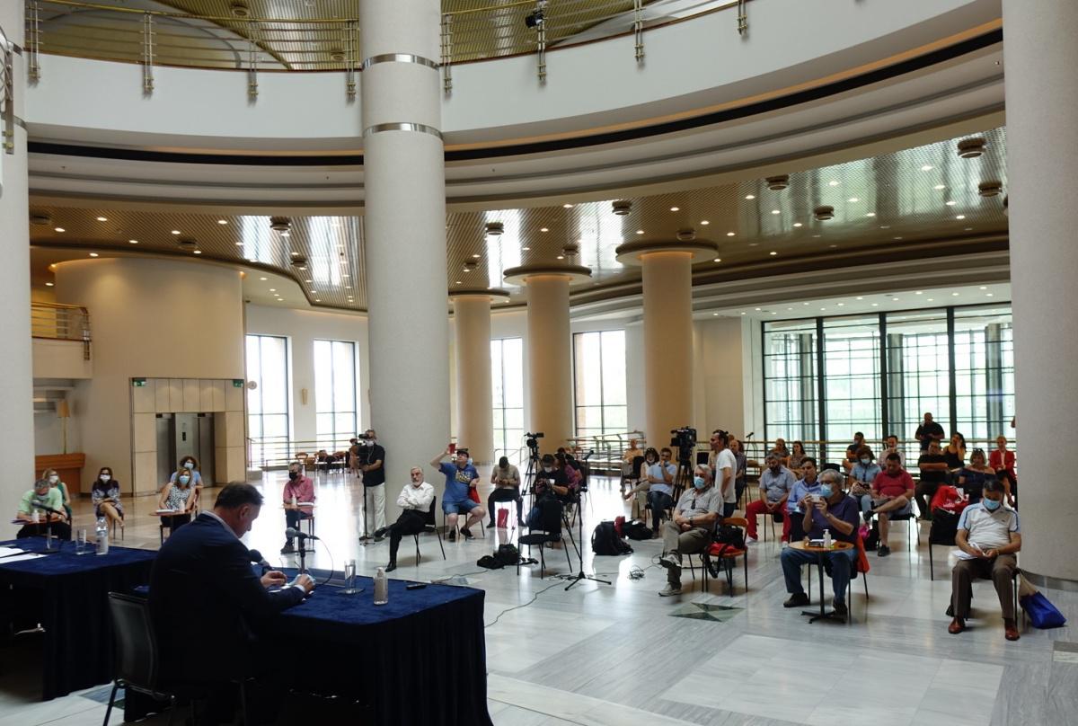 Με μια συνέντευξη Τύπου το μεσημέρι της Δευτέρας 13 Ιουλίου 2020, στην οποία τηρήθηκαν αυστηρά όλα τα υγειονομικά πρωτόκολλα, ο πρόεδρος Βασίλης Γάκης και το Δ.Σ. του ΟΜΜΘ πραγματοποίησαν την πρώτη τους δημόσια παρουσίαση έπειτα από την ανάληψη των καθηκόντων τους, τον περασμένο Φεβρουάριο. Η αιτία της καθυστέρησης αυτής δεν ήταν άλλη από τα περιοριστικά μέτρα που ίσχυαν όλο το προηγούμενο διάστημα. Τώρα, με αφορμή την ανακοίνωση του θερινού καλλιτεχνικού προγράμματος του Μεγάρου, ο πρόεδρος του Οργανισμού βρήκε την ευκαιρία να αναφερθεί και σε διάφορα άλλα σημαντικά θέματα.