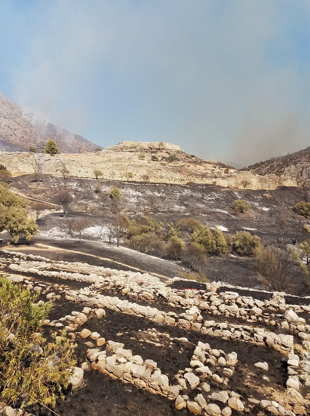 Μέσα από τον αρχαιολογικό χώρο πέρασε η φωτιά που είναι σε εξέλιξη από το μεσημέρι της Κυριακής στην περιοχή των Μυκηνών.