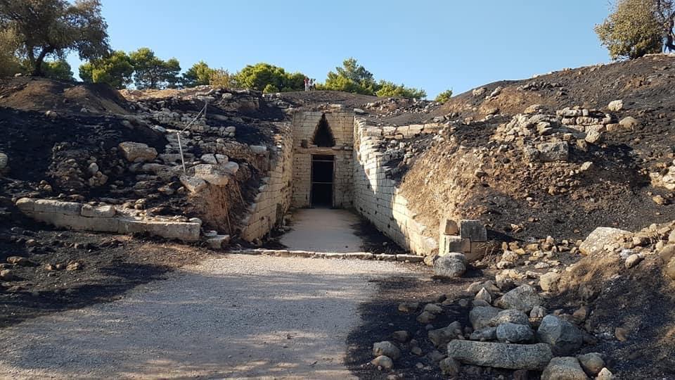 Ο αρχαιολογικός χώρος των Μυκηνών δεν γλίτωσε τελικά από τη μανία της μεγάλης φωτιάς που ξέσπασε το μεσημέρι της Κυριακής πλησίον του τάφου του Αγαμέμνονα, καθώς οι φλόγες πέρασαν μέσα από αυτόν, με τις πυροσβεστικές δυνάμεις να παλεύουν να σώσουν ό,τι μπορούν.