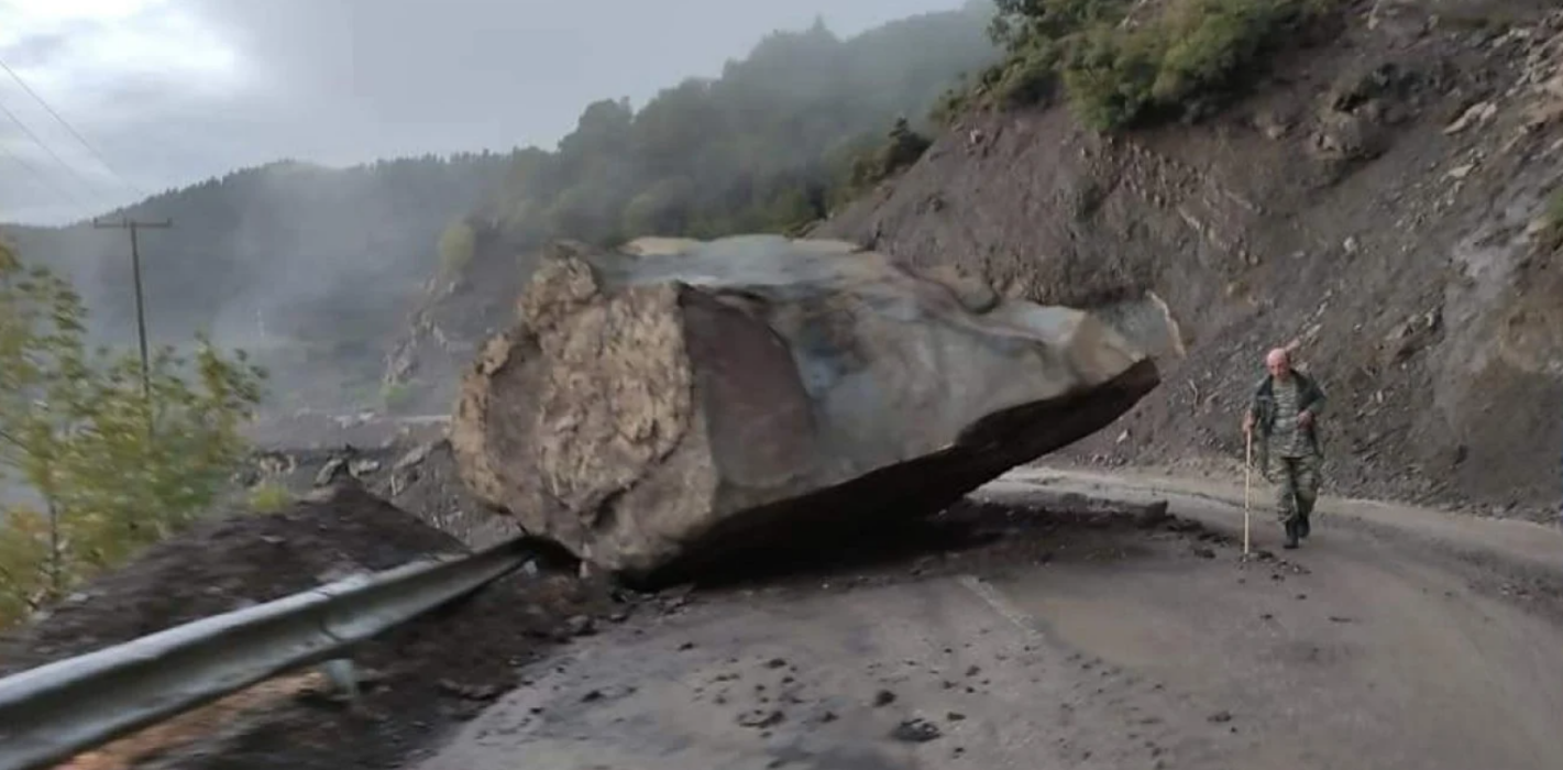 Άγραφα: Τεράστιος βράχος έπεσε κοντά σε σπίτια και έκοψε στα δύο τον δρόμο