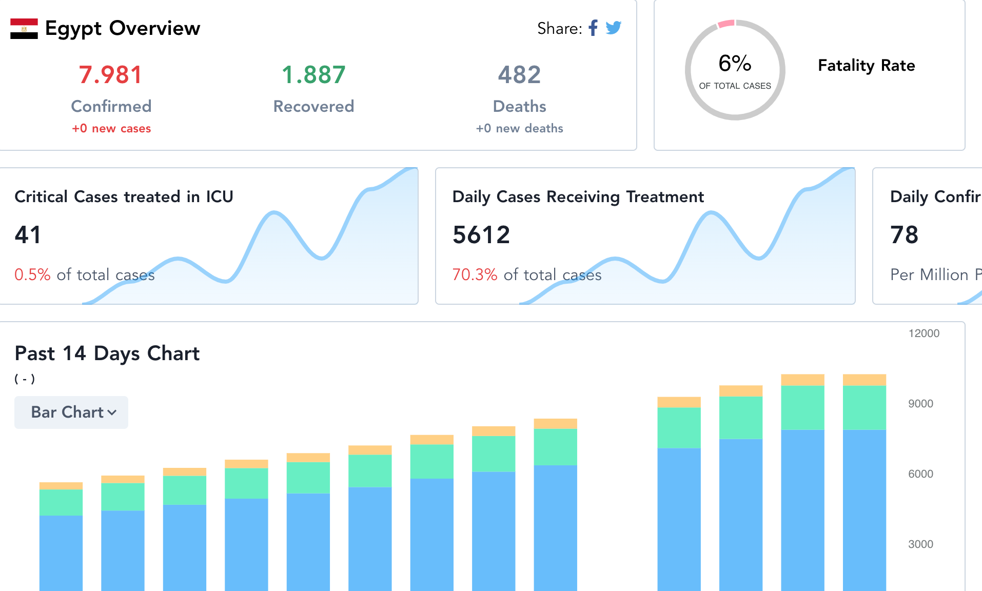 Με 21 ανθρώπους που έχασαν τη ζωή τους από επιπλοκές της νόσου Covid-19 το τελευταίο 24ωρο, νέο ρεκόρ στην καταγραφή θανάτων, ανήλθε σε 503 ο συνολικός αριθμός των θυμάτων από τον κορονοϊό στην Αίγυπτο.