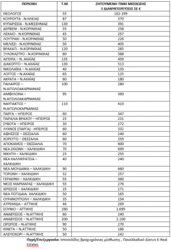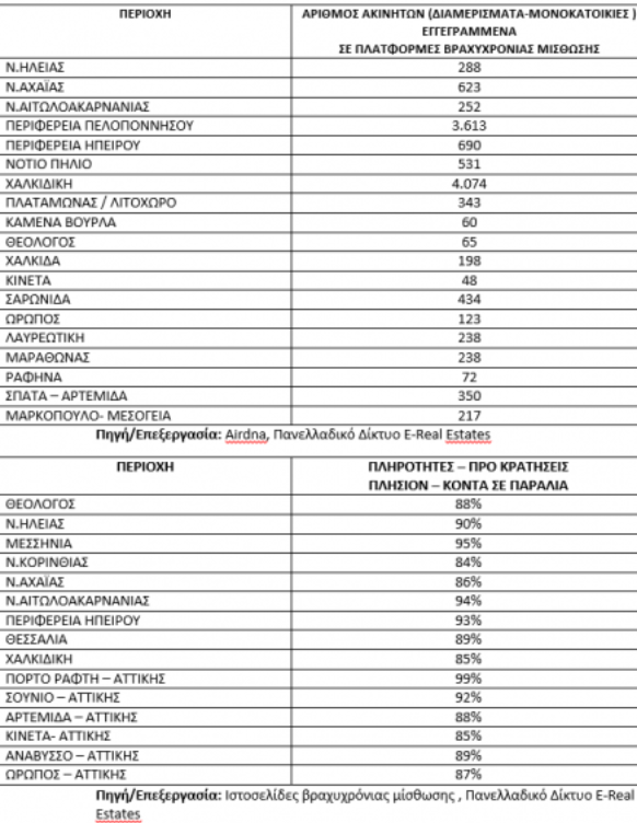 Οι εγγραφές ακινήτων σε πλατφόρμες βραχυχρόνιας μίσθωσης, σύμφωνα με τα στοιχεία του Πανελλαδικού Δικτύου E-Real Estates έχουν αυξηθεί σε σχέση με την προ covid-19 εποχή, διότι πολλοί ιδιοκτήτες ακινήτων έχουν διακρίνει την υψηλή ζήτηση για αυτοτελή διαμερίσματα ή/και κατοικίες σε τουριστικούς προορισμούς.