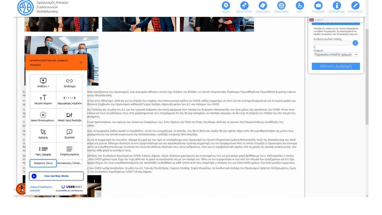 Η ιστοσελίδα του ΟΑΣΘ εμπλουτίζεται με πρόσθετο εργαλείο προσβασιμότητας
