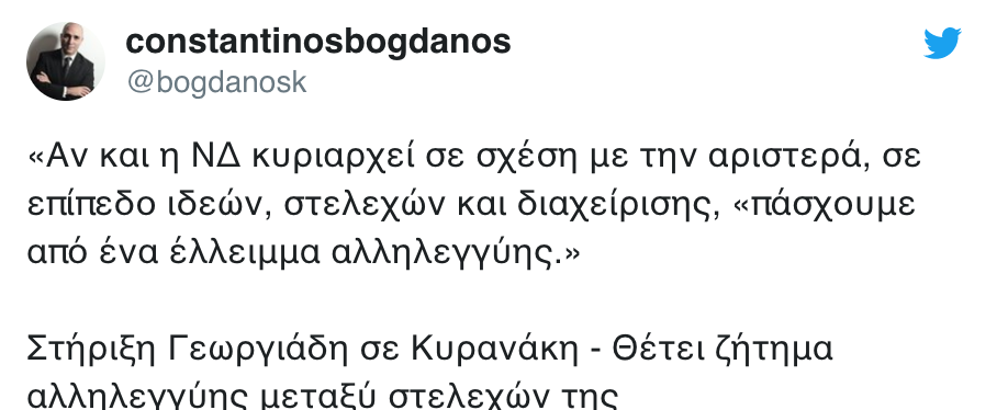 Στο μεταξύ ο Κωνσταντίνος Μπογδάνος σε σχετικό τουίτ έγραψε: