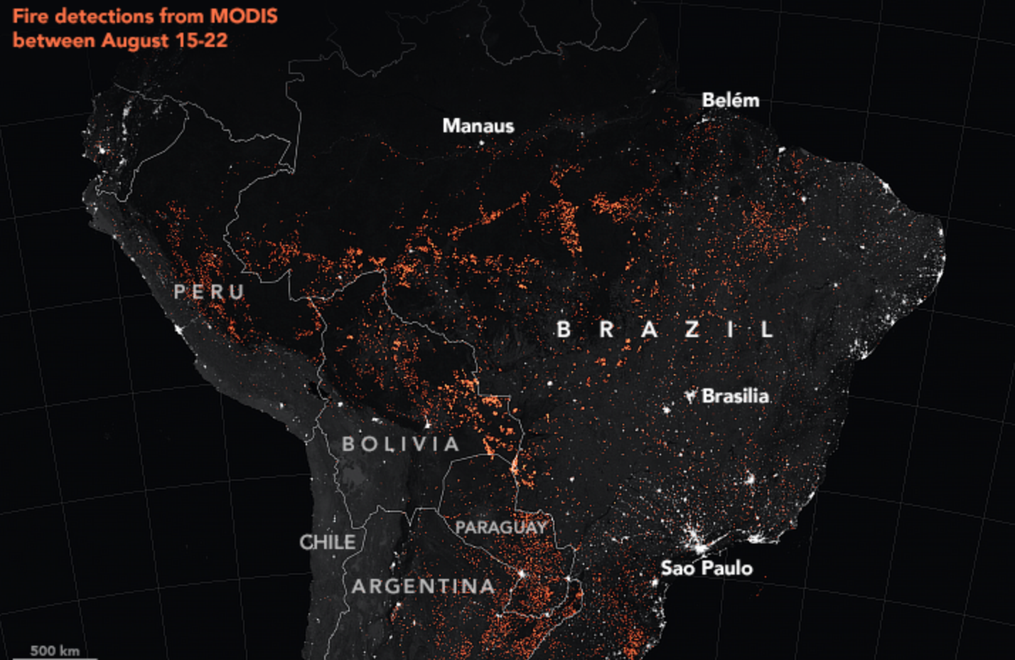 Εξάλλου περίπου 1.663 νέες πυρκαγιές ξέσπασαν από την Πέμπτη ως την Παρασκευή, σύμφωνα με το Εθνικό Ινστιτούτο Διαστημικής Έρευνας της Βραζιλίας (INPE). Ο Μπολσονάρου έδωσε την Παρασκευή άδεια για την ανάπτυξη του στρατού προκειμένου να αντιμετωπιστούν οι πυρκαγιές και η εγκληματικότητα στην περιοχή, όμως εκτίμησε ότι οι πυρκαγιές ενδέχεται να χρησιμοποιηθούν «ως πρόφαση» για διεθνείς κυρώσεις.