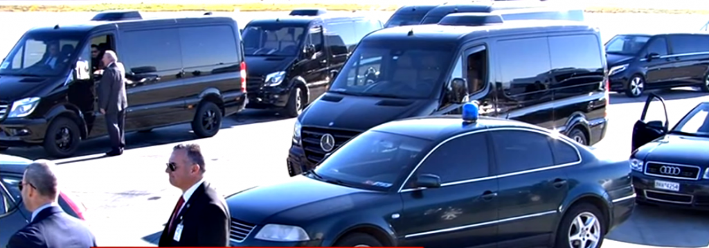 Αποχωρεί με κατεύθυνση την Κομοτηνή από το “Ελευθέριος Βενιζέλος” συνοδεία πλήθος αυτοκινήτων, ανθρώπων ασφαλείας και της αντιπροσωπείας του ο Τούρκος Πρόεδρος.