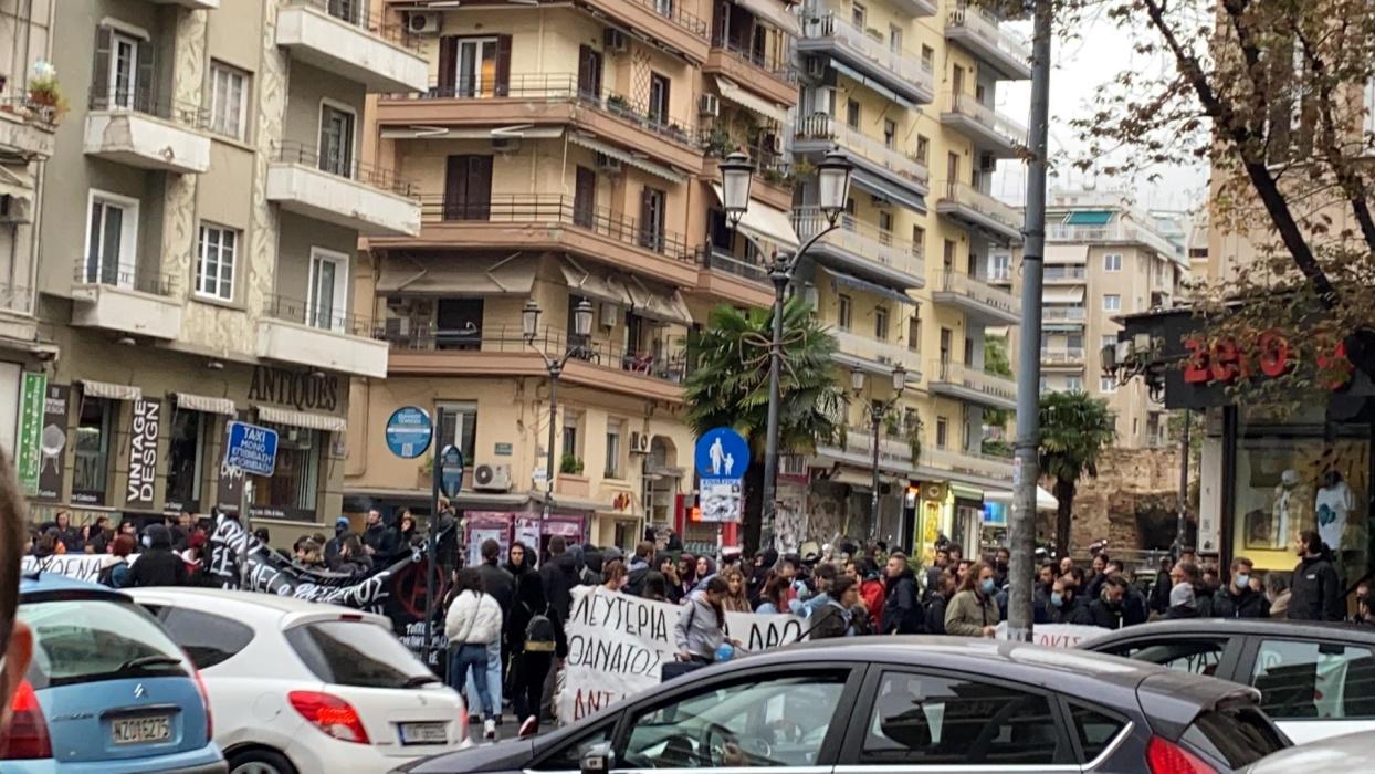 Οι συγκεντρωμένοι διαδηλώνουν κατά των βίαιων ακροδεξιών επιθέσεων που έλαβαν χώρο στις Δυτικές Συνοικίες της Θεσσαλονίκης. Με κοινό τους σύνθημα «Να τσακίσουμε τον φασισμό και το σύστημα που τον γεννά».