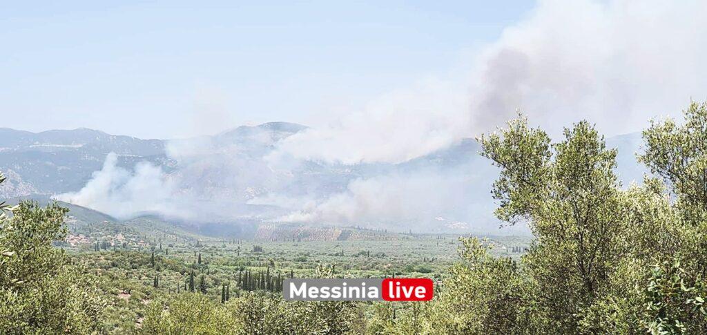 Ο άνεμος, που έχει ενισχυθεί, είναι αντίπαλος των πυροσβεστικών δυνάμεων, όπως μεταδίδει το messinialive.gr.
