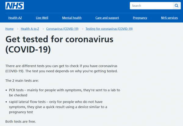 Σημειώνεται πως στην επίσημη σελίδα του Εθνικού Συστήματος Υγείας της Αγγλίας (NHS) αναφέρεται ότι τόσο τα rapid όσο και τα μοριακά τεστ είναι δωρεάν.