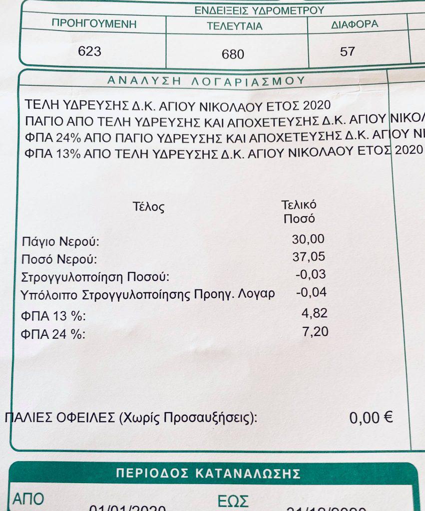 Πολλοί κάτοικοι έσπευσαν να πληρώσουν το λογαριασμό πιστεύοντας πως ίσως είχαν κάποια διαρροή όμως αρκετοί κατέφυγαν στο δήμο κάνοντας ένσταση και αρνούμενοι να πληρώσουν το απίστευτο τίμημα που τους ζητήθηκε.