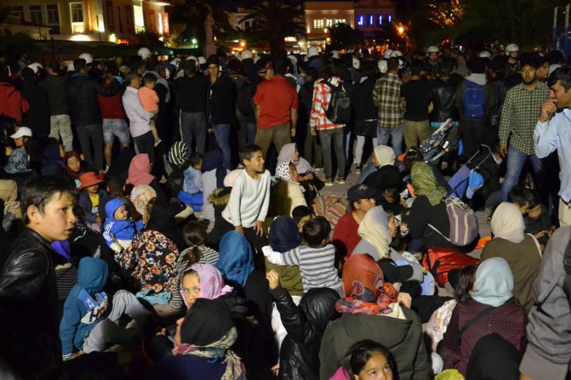 Όλα ξεκίνησαν περίπου στις 20.00 το βράδυ της Κυριακής, αμέσως μετά την καθιερωμένη από στρατιωτικό άγημα υποστολή της σημαίας σε παρακείμενο στην πλατεία Σαπφούς χώρο. Εκεί είχε συγκεντρωθεί μεγάλος αριθμός πολιτών σε ένδειξη συμπαράστασης στους κρατούμενους στις τουρκικές φυλακές Έλληνες στρατιωτικούς. Μετά το πέρας της τελετής, η μεγάλη πλειονότητα των συγκεντρωμένων αποχώρησε, αλλά περίπου 200 άτομα κινήθηκαν προς την πλατεία απαιτώντας την εκκένωση της από τους πρόσφυγες και τους μετανάστες.