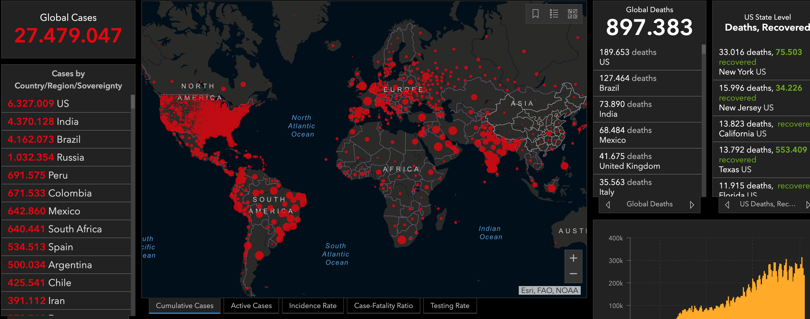 27,57 εκατομμύρια τα κρούσματα και 895.990 θάνατοι παγκοσμίως