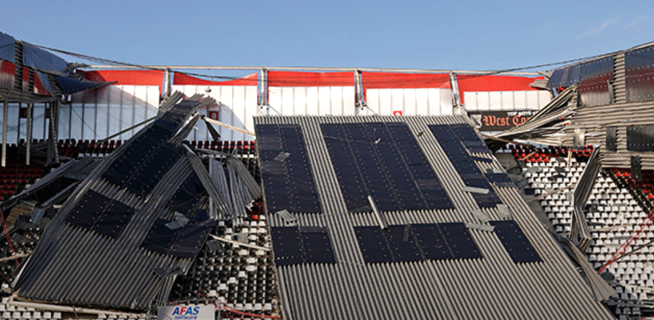 Εντυπωσιακές είναι οι φωτογραφίες από τις ζημιές στο στάδιο AFAS, χωρητικότητας 17.000 ανθρώπων, το οποίο κατασκευάστηκε πριν από 13 χρόνια στην περιφέρεια του Άλκμααρ, στο βόρειο τμήμα της Ολλανδίας. “Εκπλαγήκαμε.