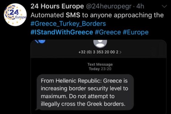 Σε αποστολή SMS, μέσω των οποίων καλούν πρόσφυγες και μετανάστες να μην πλησιάζουν τα ανατολικά σύνορα της χώρας, καταφεύγει τις τελευταίες ώρες η ελληνική κυβέρνηση.