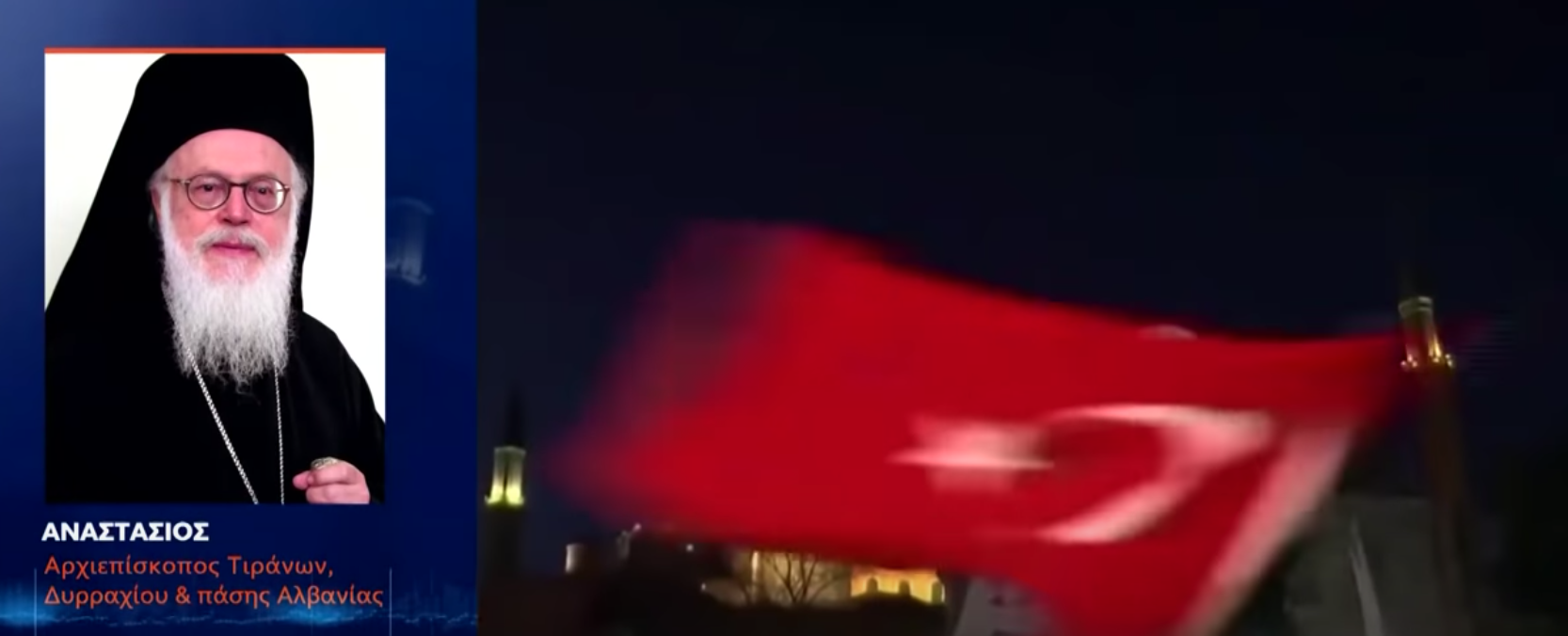 «Πολιτιστική τζιχάντ», χαρακτήρισε ο Αρχιεπίσκοπος Τιράνων, Δυρραχίου και πάσης Αλβανίας Αναστάσιος την επιλογή Ερντογάν να μετατραπεί η Αγία Σοφία σε τέμενος, στο πλαίσιο παρέμβασής του στο κεντρικό δελτίο Ειδήσεων της ΕΡΤ1.