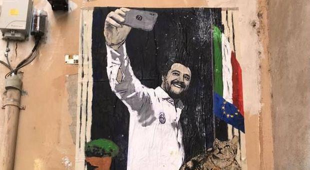 Ένα έργο τέχνης δρόμου που διακωμωδούσε τον ηγέτη της άκρας δεξιάς στην Ιταλία, τον αντιπρόεδρο της κυβέρνησης και υπουργό Εσωτερικών της χώρας Ματέο Σαλβίνι, εμφανίστηκε στο κέντρο της Ρώμης χθες Παρασκευή και παρέμεινε σ’ έναν τοίχο για λίγες ώρες, πριν σβηστεί από την αστυνομία.