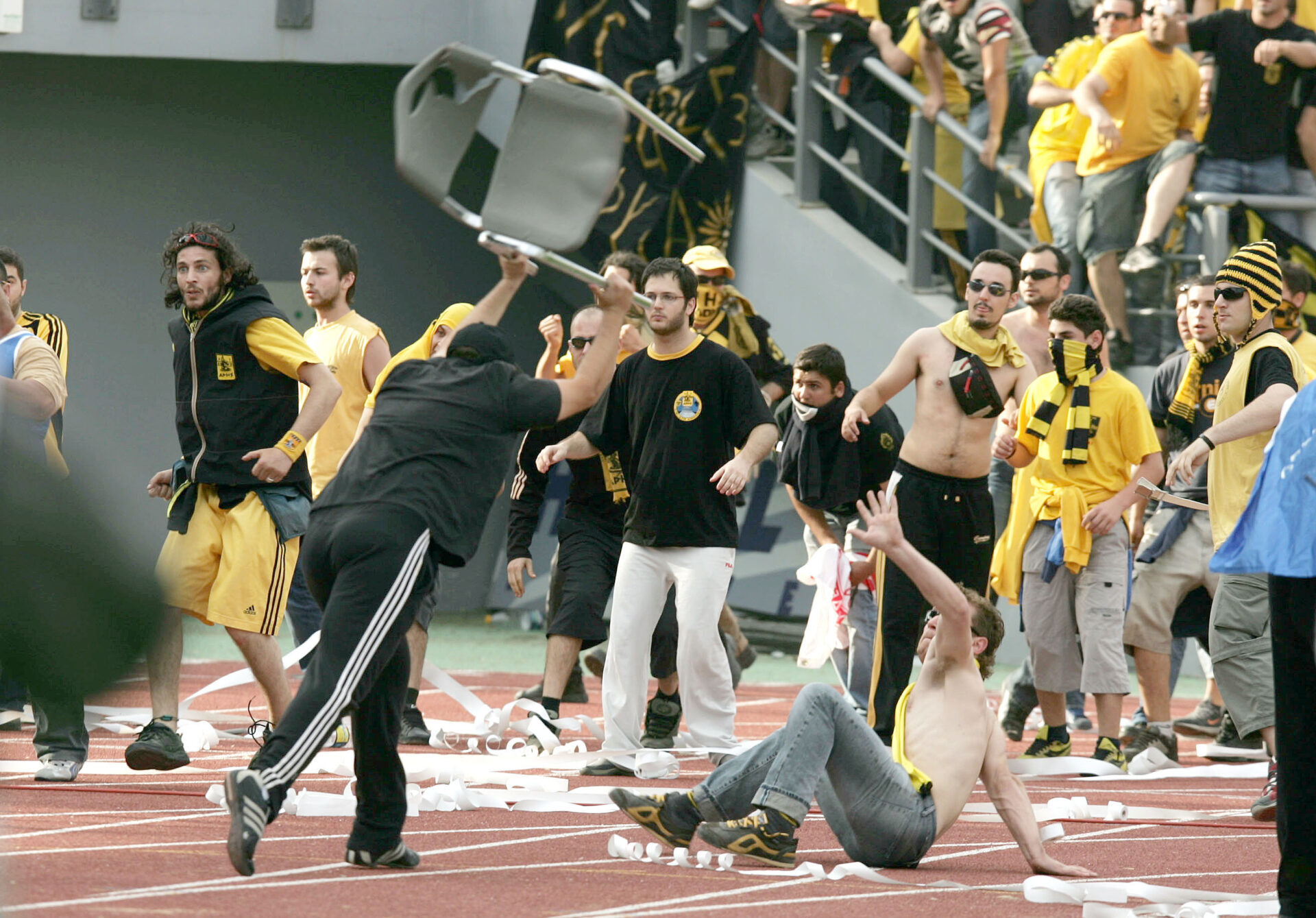Η κατάσταση που επικρατούσε, πριν ακόμα ξεκινήσει ο αγώνας ήταν χαοτική. Συμπλοκές σημειώθηκαν μεταξύ των οπαδών και πετροπόλεμος και ρίψει δακρυγόνων με την αστυνομία. Η αποστολή του Άρη εγκλωβίστηκε στο λεωφορείο από φιλάθλους του Ολυμπιακού, φτάνοντας στο γήπεδο δύο ώρες αργότερα. Η ομάδα ζήτησε να καθυστερήσει ο αγώνας, αλλά η κρατική τηλεόραση δεν το δέχτηκε γιατί μετά είχε Eurovision. Συνεπώς, οι παίκτες του Άρεως αγωνίστηκαν εξουθενωμένοι και ψυχολογικά πεσμένοι.