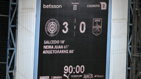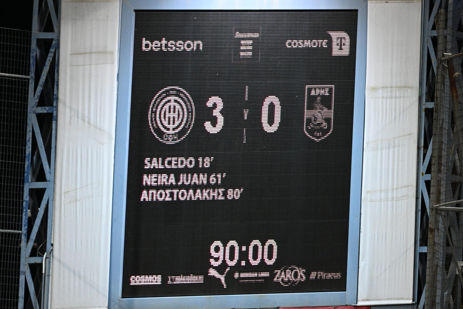 Με τη συμπλήρωση 80 λεπτών ο Αποστολάκης πέρασε ανάμεσα από από δυο παίκτες του Άρη και με άπιαστο πλασέ διαμόρφωσε το 3-0 που δεν άλλαξε έως το φινάλε.