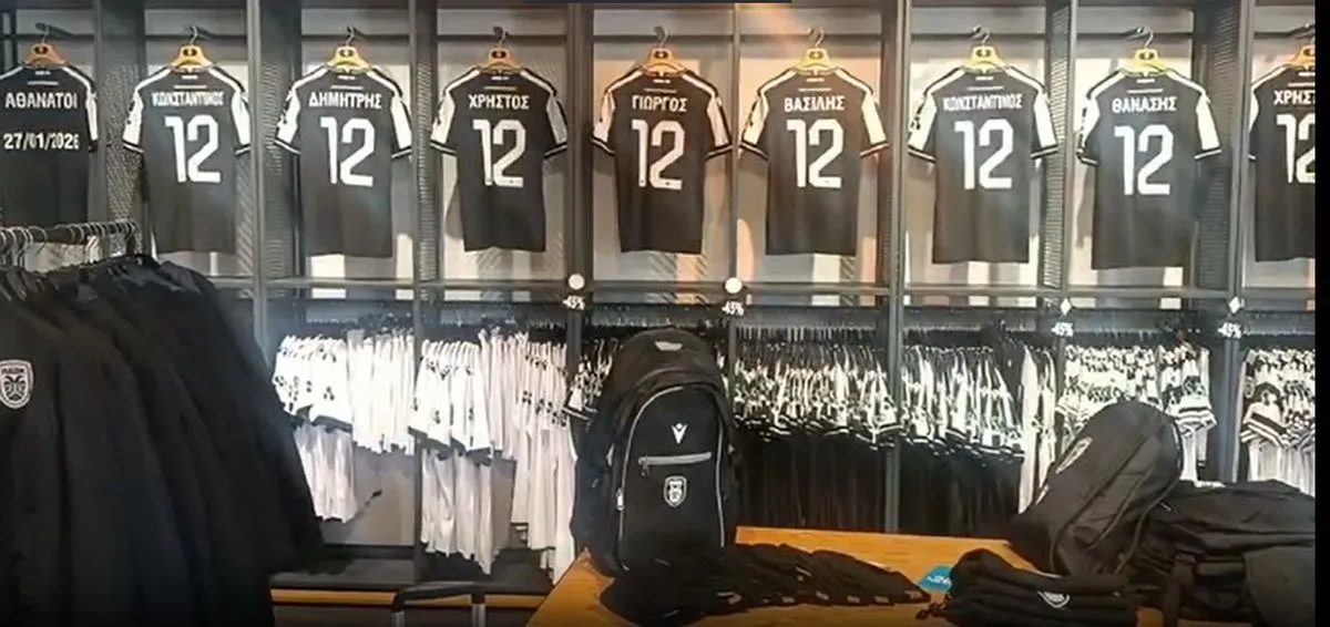 👏 Στην μπουτίκ του ΠΑΟΚ στο γήπεδο της Τούμπας υπάρχουν οκτώ φανέλες με τα ονόματα των επτά φίλων της ομάδας που σκοτώθηκαν στο τροχαίο.