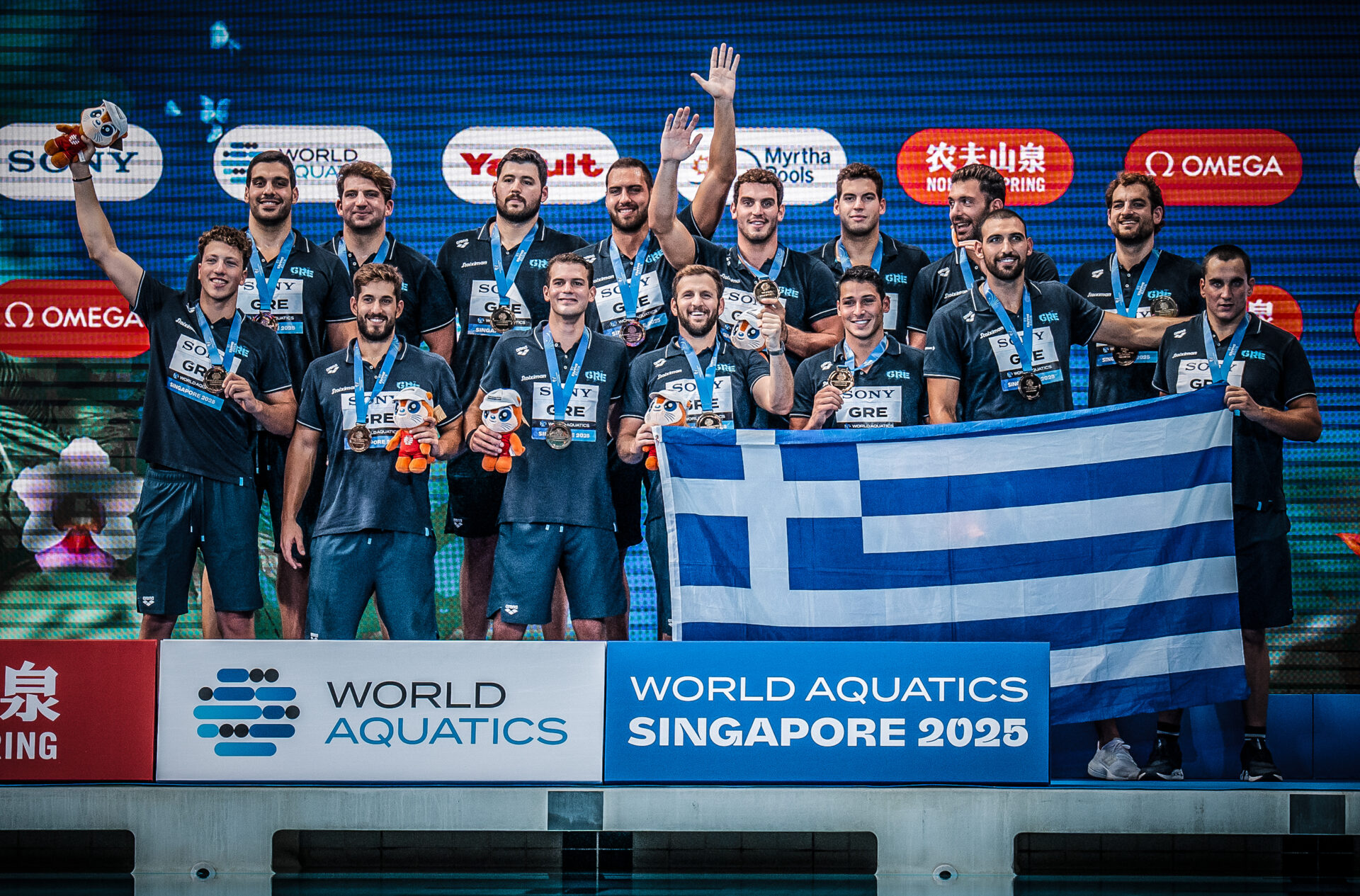 Το χάλκινο μετάλλιο στο Παγκόσμιο Πρωτάθλημα της Σιγκαπούρης κατέκτησε η Εθνική Ελλάδος πόλο των ανδρών, νικώντας εύκολα τη χρυσή Ολυμπιονίκη του Παρισιού Σερβία στον μικρό τελικό της διοργάνωσης.