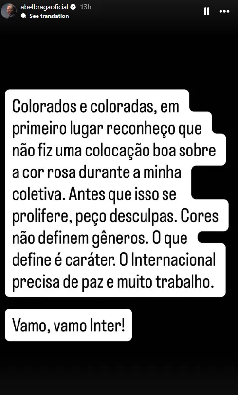 Σφοδρές αντιδράσεις έχει προκαλέσει το ομοφοβικό σχόλιο που έκανε ο προπονητής της Ιντερνασιονάλ Πόρτο Αλέγκρε, Άμπελ Μπράγκα. Συγκεκριμένα, ο νέος τεχνικός της ομάδας στην πρώτη του συνέντευξη Τύπου σχολίασε το χρώμα της φανέλας του συλλόγου, το οποίο είναι ροζ.