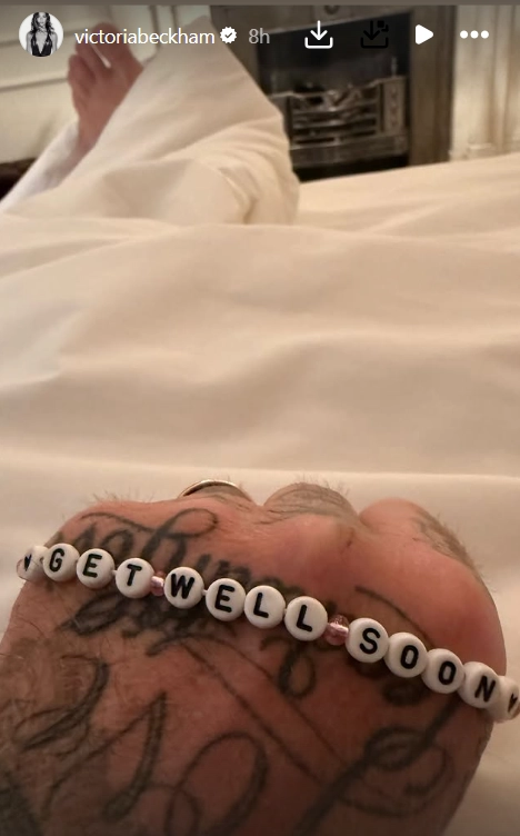 Ακολούθησε μία νέα φωτογραφία, στην οποία αυτή τη φορά ο Μπέκαμ ξεκουράζεται στο σπίτι του και φοράει ένα βραχιολάκι το οποίο γράφει “Περαστικά”.