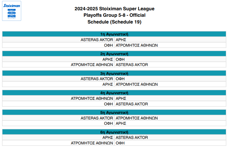 Πραγματοποιήθηκε η κλήρωση των playoffs της Stoiximan Super League, με τον ΠΑΟΚ να συμμετέχει σε αυτά των θέσεων 1-4 και τον Άρη σε αυτά για τις θέσεις 5-8.