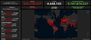 Ο συνολικός αριθμός των κρουσμάτων έφτασε στα 33,32 εκατομμύρια κρούσματα μόλυνσης από την COVID-19 και ο συνολικός αριθμός των θανάτων στους 443.497 θανάτους, σύμφωνα με το υπουργείο Υγείας.