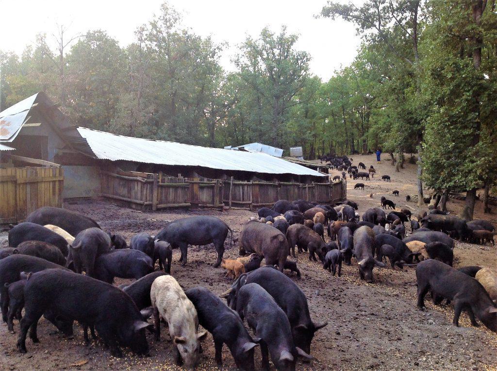 Παρότι προχωρημένο πρωινό, το φως του ανοιξιάτικου ήλιου δεν φτάνει μέχρι το έδαφος στο συγκεκριμένο σημείο του Αριστοτελικού Όρους. Τα κλαδιά των βελανιδιών είναι τόσο πυκνά, που ο περιπατητής δυσκολεύεται να δει τον ουρανό ανάμεσά τους. Σε αυτό το περιβάλλον, στο προστατευμένο από την ευρωπαϊκή συνθήκη «Natura 2000» βουνό, ζουν σχεδόν ελεύθεροι και τρέφονται αποκλειστικά από τα βελανίδια που πέφτουν από τα δέντρα, εκατοντάδες μαύροι χοίροι, ένα αρχέγονο είδος, γνωστό για το πεντανόστιμο κρέας του, πλούσιο σε ωφέλιμα Ω3 λιπαρά.