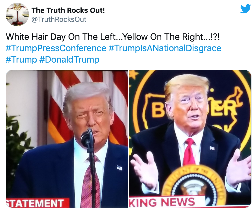 Στην τελευταία του εμφάνιση στην ενημέρωση των δημοσιογράφων στον Λευκό Οίκο, το χρώμα των μαλλιών φαίνεται πως άλλαξε και αυτό έκανε το Twitter να ξεσαλώσει και πάλι.