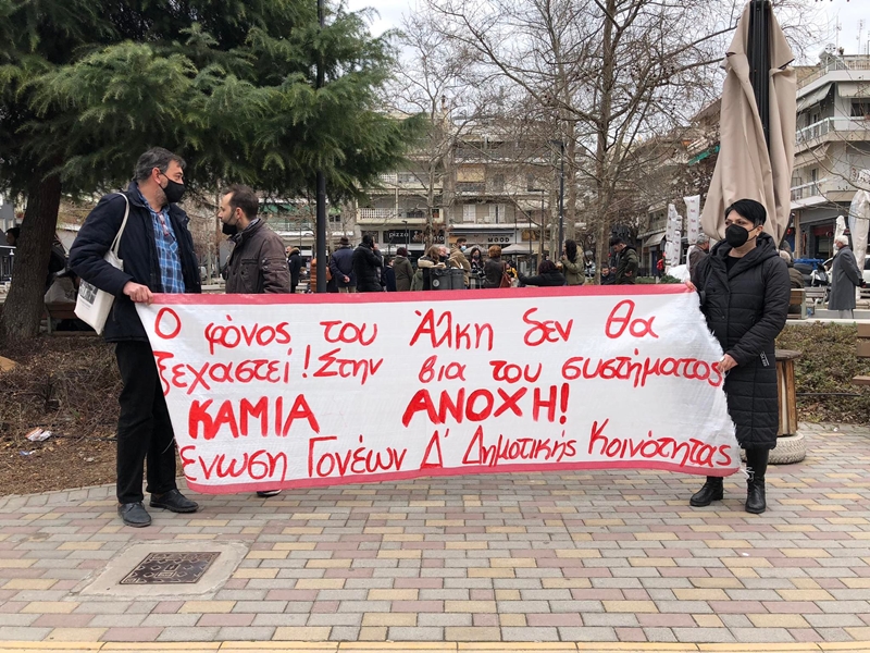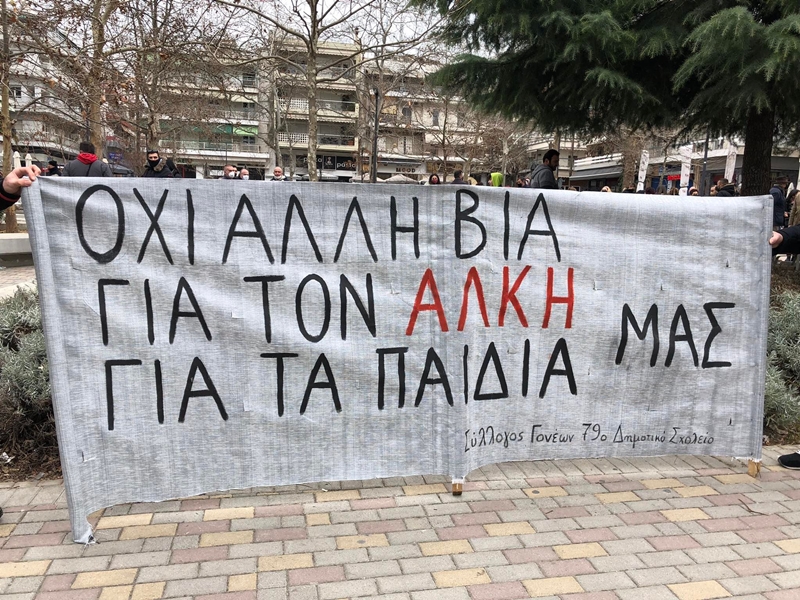 Συγκέντρωση στη μνήμη του Άλκη Καμπανού και ενάντια στη βία πραγματοποιεί αυτήν την ώρα στη Χαριλάου ο Σύλλογος Γονέων και Κηδεμόνων του 79ου Δημοτικού Σχολείου.