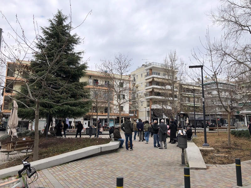 Οι συμμετέχοντες βρίσκονται απέναντι από το σημείο όπου δολοφονήθηκε ο 19χρονος.