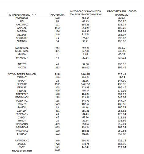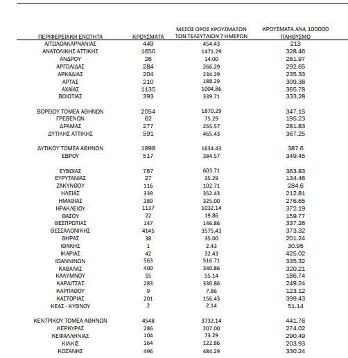 Αναλυτικότερα τα κρούσματα στις περιφερειακές ενότητες που ανήκουν στην Αττική: