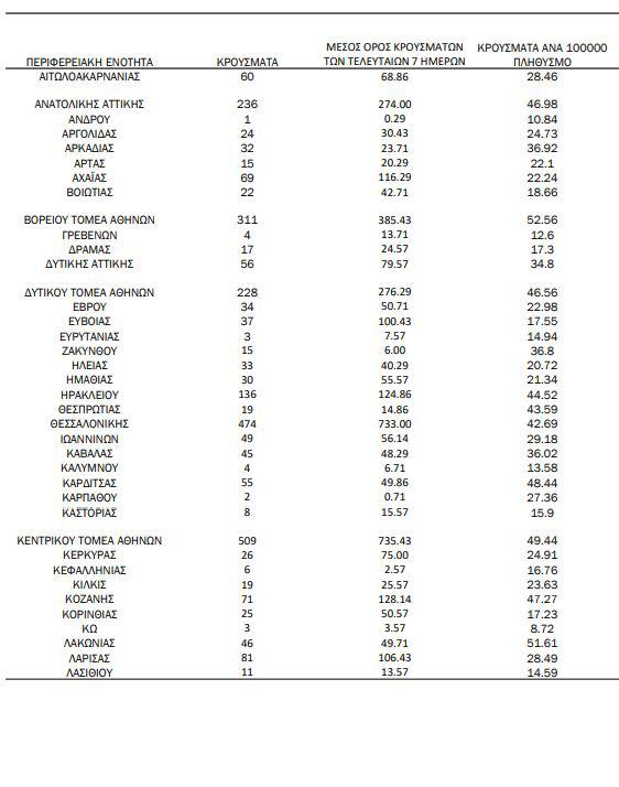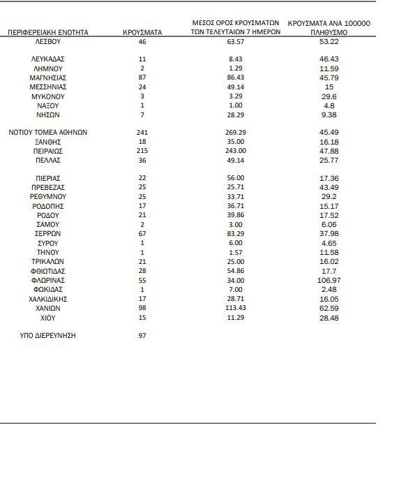 Σε ποιες περιοχές εντοπίζονται τα νέα κρούσματα.