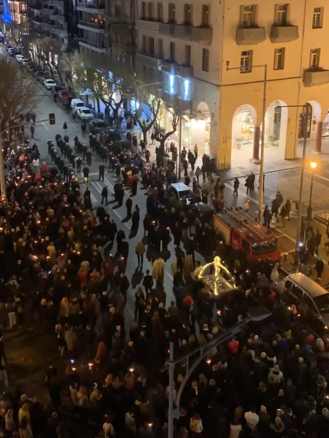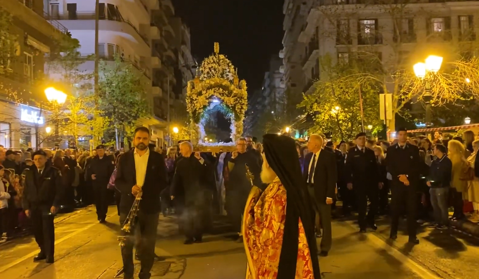 Η περιφορά του Επιταφίου ξεκίνησε λίγο μετά τις 21:00 από τον Μητροπολιτικό Ναό του Αγίου Γρηγορίου Παλαμά και θα κινηθεί στο κέντρο της Θεσσαλονίκης.
