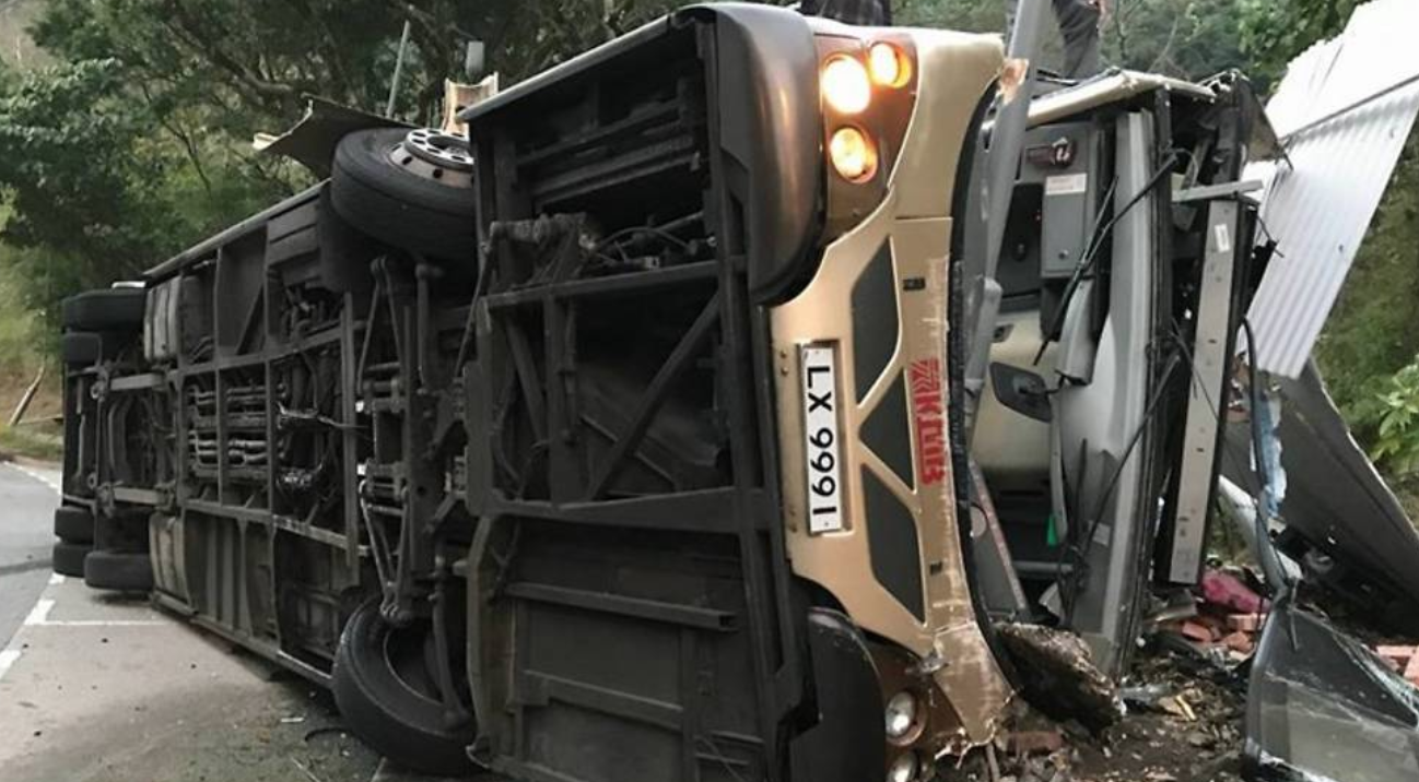 Φωτογραφίες και πλάνα από τον τόπο του δυστυχήματος εικονίζουν πυροσβέστες καθώς προσπαθούσαν κόβοντας τμήματα του οχήματος να σώσουν επιβάτες παγιδευμένους στο εσωτερικό του λεωφορείου, που κειτόταν πεσμένο στη μία του πλευρά με την οροφή του παραμορφωμένη, στα όρια του οδοστρώματος της κοινότητας Τάι Πο.