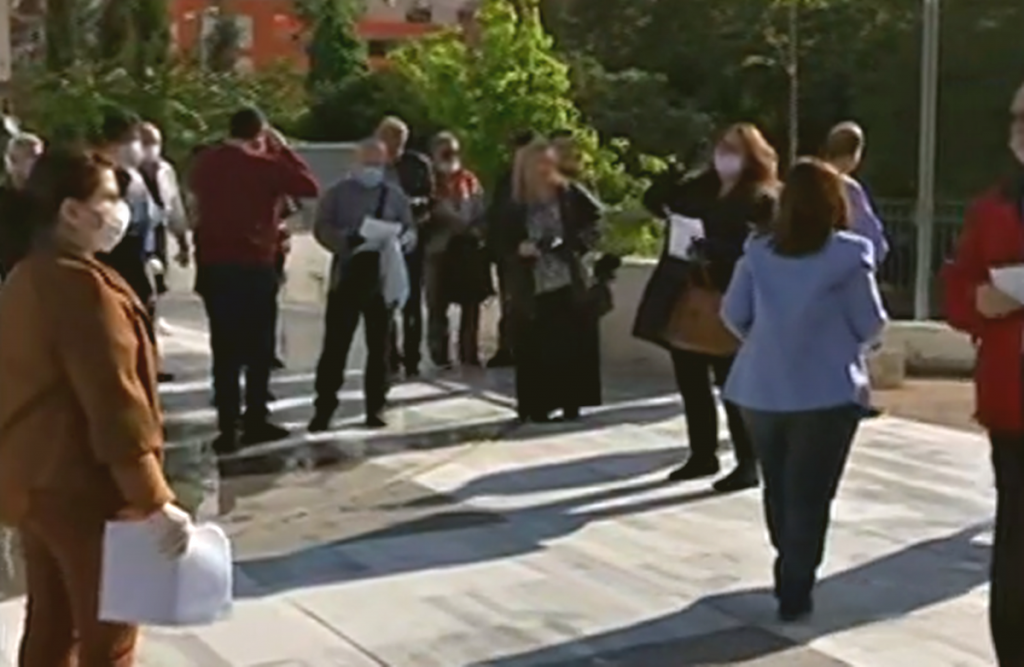 Νωρίτερα, στον προαύλιο χώρο του Πρωτοδικείου έγινε η εκφώνηση ονομάτων πολιτών που έχουν κληθεί ως ένορκοι σε υποθέσεις που επρόκειτο να εκδικαστούν. Η γραμματέας του ΜΟΔ βγήκε από το κτίριο και φωνάζοντας ένα ένα τα ονόματα σημείωσε τους παρόντες. Στη συνέχεια έγινε η κλήρωση εντός του κτιρίου.