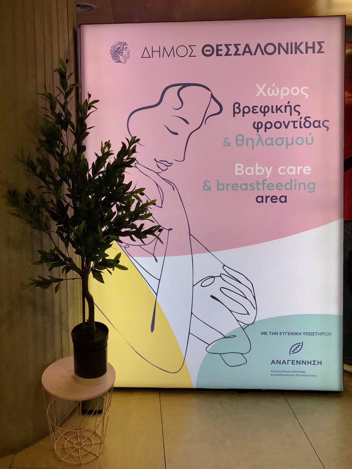 Ο χώρος βρεφικής φροντίδας και θηλασμού λειτουργεί στον πρώτο όροφο του Δημαρχείου Θεσσαλονίκης. Πρόκειται για έναν φωτεινό και κατάλληλα διαμορφωμένο χώρο στον οποίο κάθε μητέρα έχει τη δυνατότητα να θηλάσει και να φροντίσει το μωρό της σε συνθήκες ιδιωτικότητας και άνεσης.